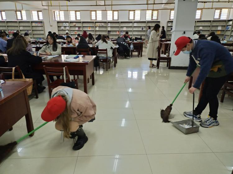 土建学院40名志愿者清扫工科楼、北区篮球场