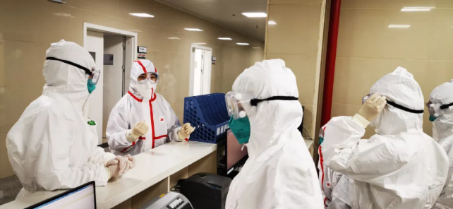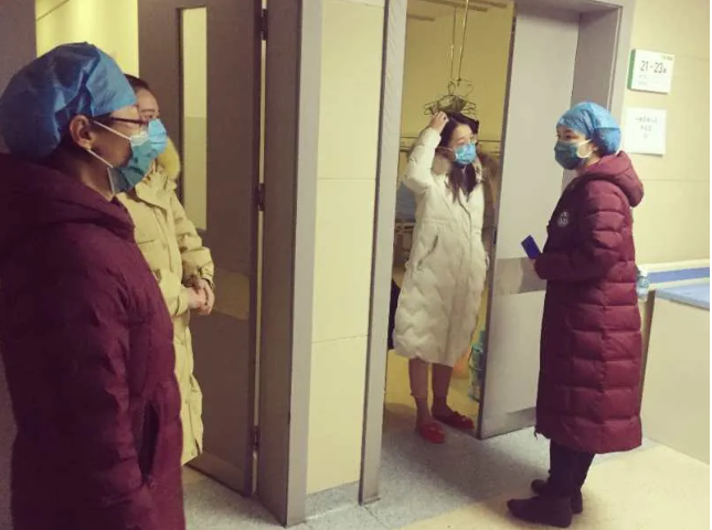 为了提高效率,张小红顾不上吃饭,甚至连水都没来得及喝一口,一遍遍地打电话与相关部门沟通交流,反复地测试、模拟、优化流程……下午六点,第一个发热病区建立完毕。张小红带着第一批护士快速穿好防护服走进了发热一病区,迎接第一批患者。