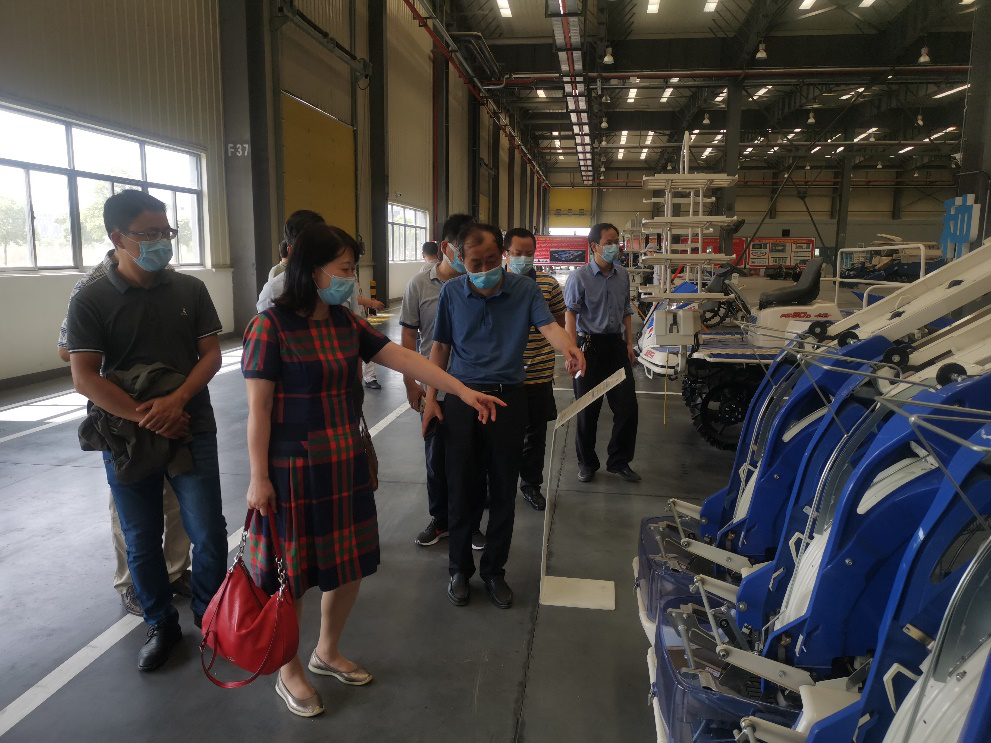 在陈时付陪同下,汪云一行参观了公司生产的拖拉机、插秧机、移栽机、植保机等主营产品。