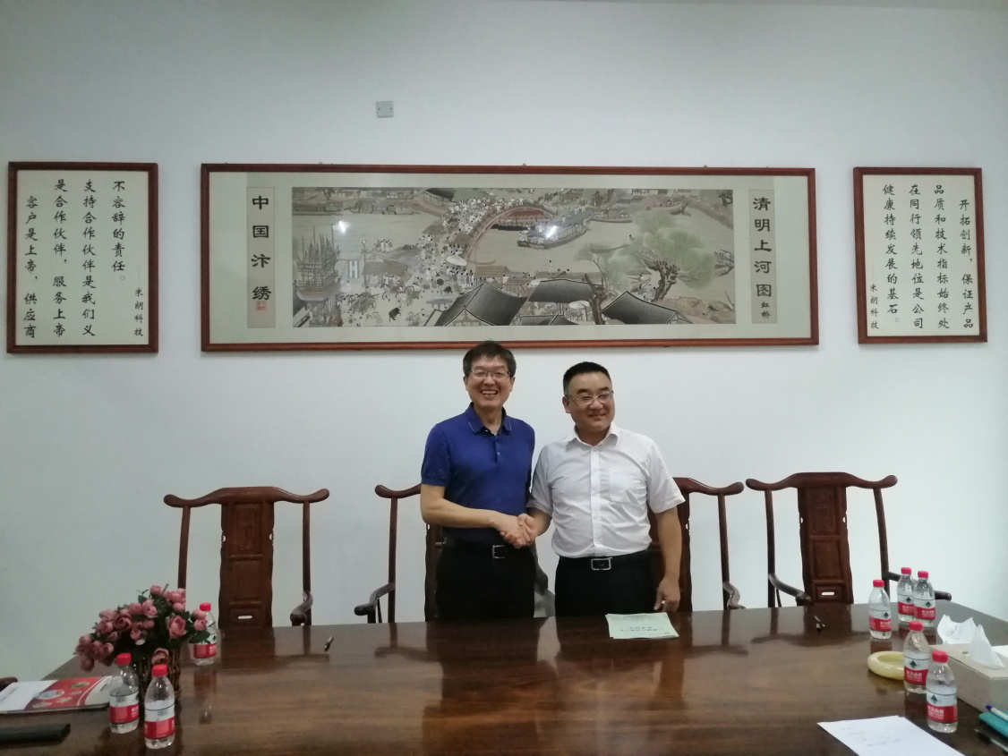 刘伦钊一行在米朗科技董事长任志胜的陪同下,参观考察了公司产品展厅、研发、生产车间。任志胜向刘伦钊一行介绍了米朗科技的发展历程、产品类型、以及目前公司在技术方面的需求。刘伦钊介绍了学校的基本概况、学科特点、师资队伍等,并就产教融合、共同开展项目合作研究等交换了意见。